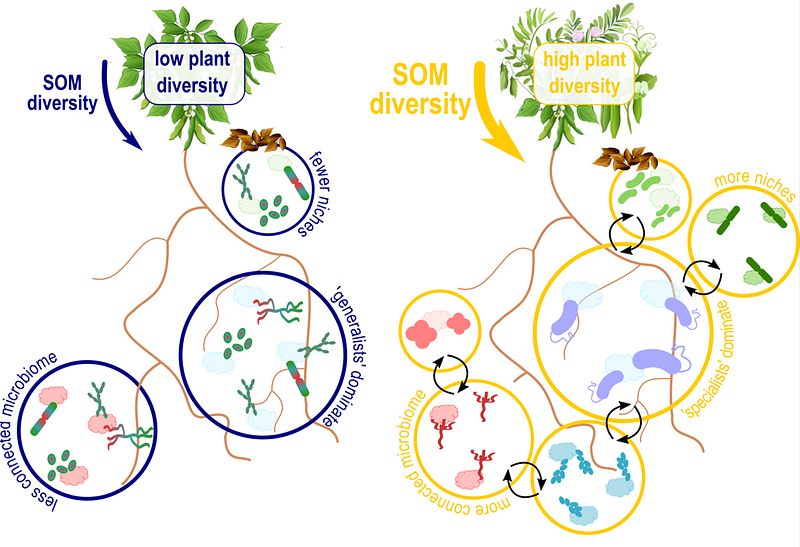 - Plant diversification likely drove microbial niche partitioning, resulting in a greater proportion of microbial specialist taxa as a result of greater SOM input diversity